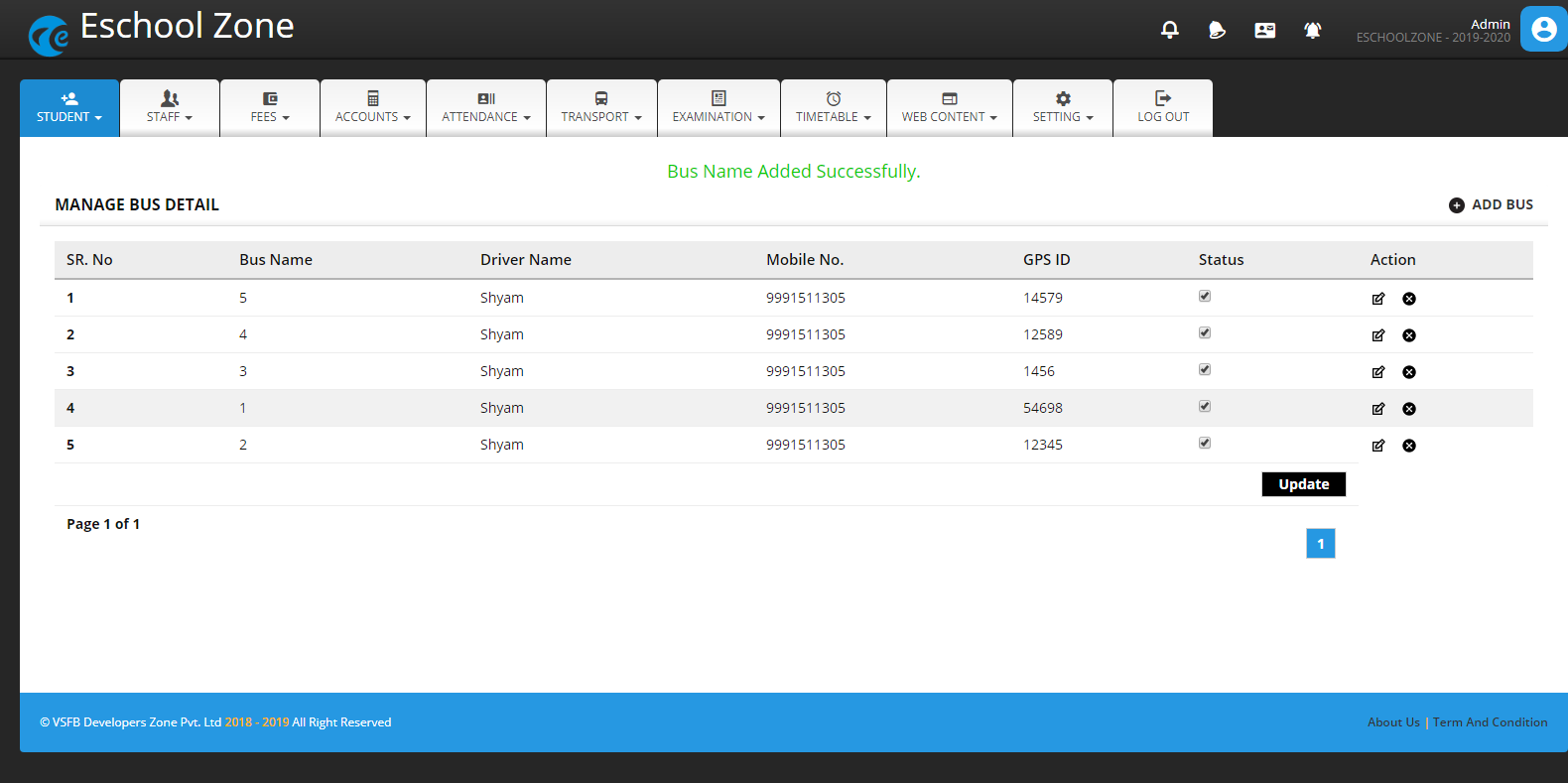 Vehicle Information like PUC expiry, insurance expiry, registration details etc. are managed here. Total expense on a vehicle and performance of a vehicle can be analyzed here.Routes & months are also set in this module.